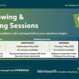 Safe Towing and Weighing Sessions Free Safe Towing and Weighing Workshops in Wentworth Shire this May Council is inviting local residents to participate in a... 05 May 10:00 am - 12:00 pm