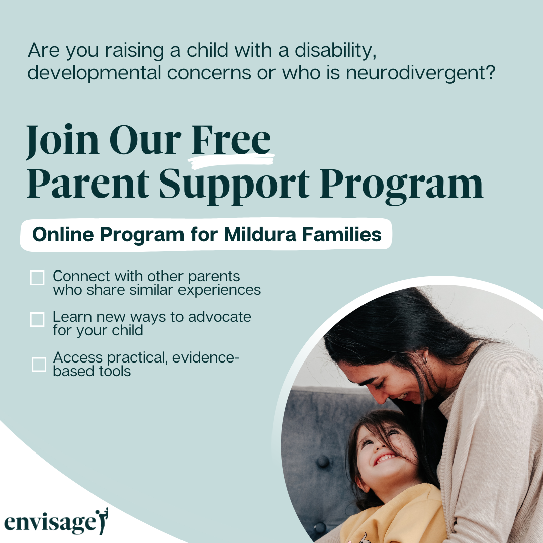 ENVISAGE is fully funded (free) program for parents & caregivers raising children aged 0-8 with a disability, developmental concerns, or who are neurodiverse.