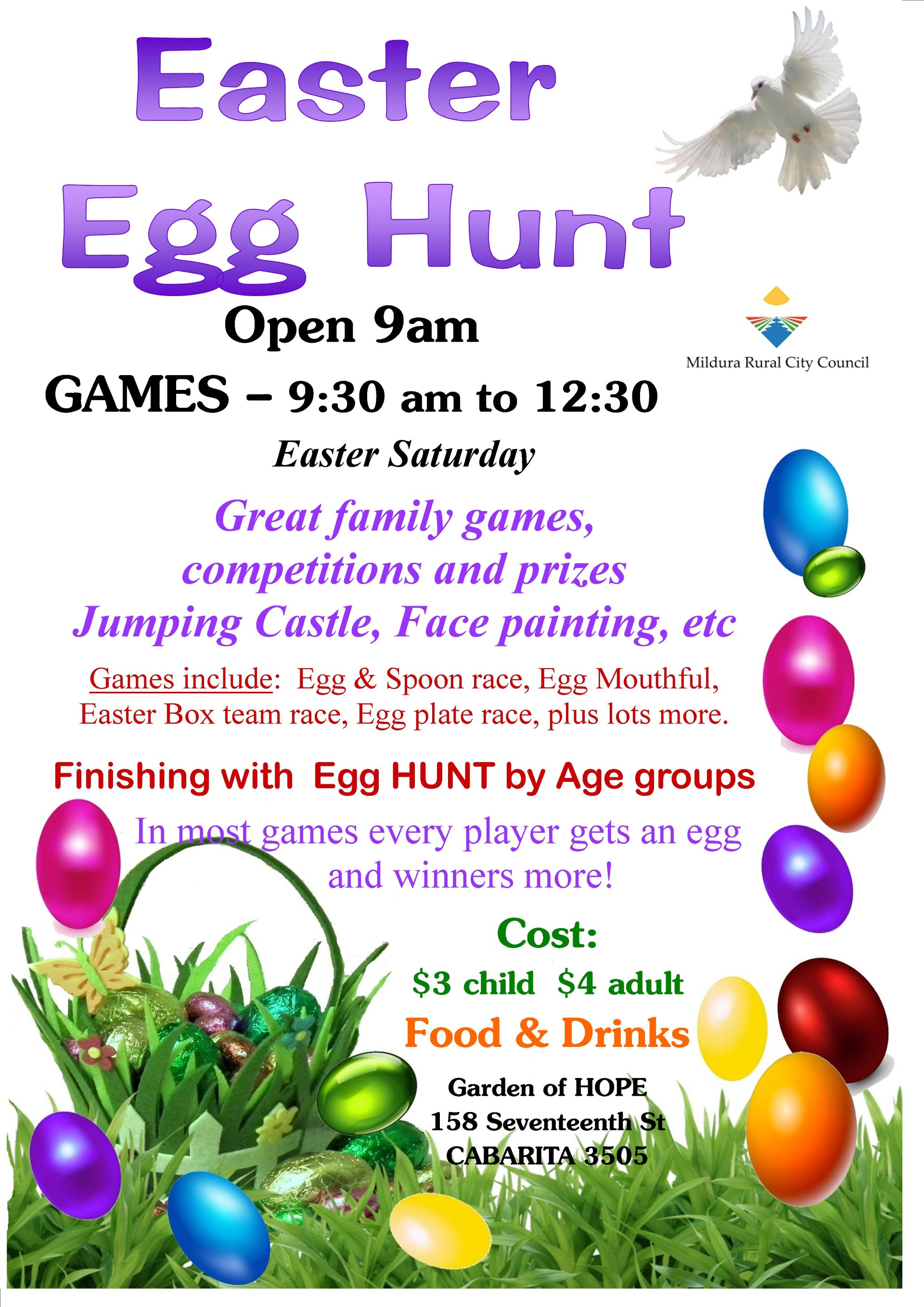 Games include egg and spoon race, egg mouthful, Easter box team race, egg plate race, plus lots more.