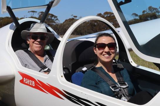 We offer soaring flights over Sunraysia for tourists and locals. Flights usually last between 20 and 30 minutes. We also offer flight training for those folk interested in a career in aviation. You can organise a flight via a FB message, a voucher from the Information Centre in Deakin Av, call the club on 0493 067 180 or just turn up at the field. Google maps will get you there. We have two modern two seat gliders used for both air experience and flight training