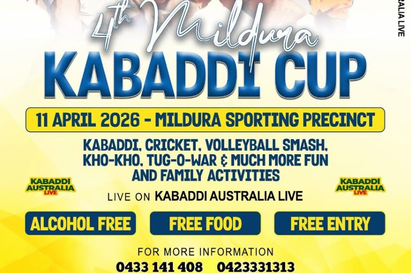 The Kabaddi Cup 2026, organised by the Shaheed Udham Singh Sports Club Mildura, is fast approaching, coming up on the 11th of April. This alcohol free, family friendly event consists of many fun and entertaining sports such as Kabaddi, Cricket, Volleyball Smash, Musical Chairs, Tug of War, Kho-kho, and such more. Similar to the past three Kabaddi cups, the event will have zero entry fee and free food will be available for all that attend.