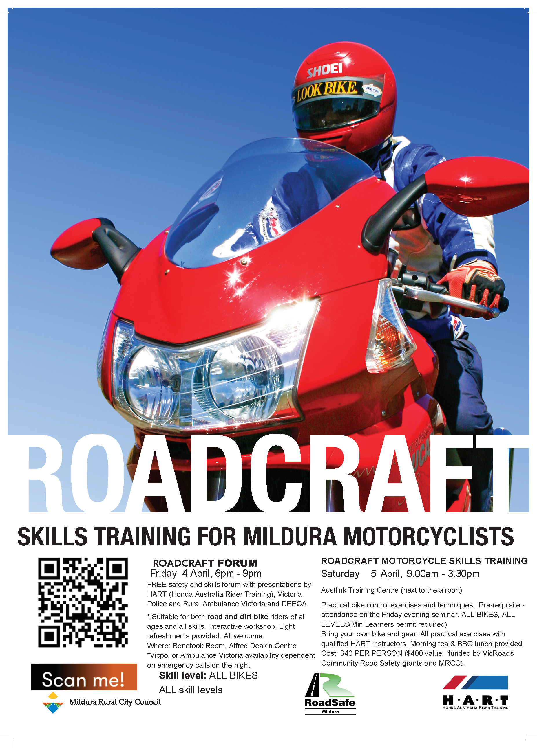 Cost: $40 PER PERSON ($400 value, funded by VicRoads Community Road Safety grants and MRCC).