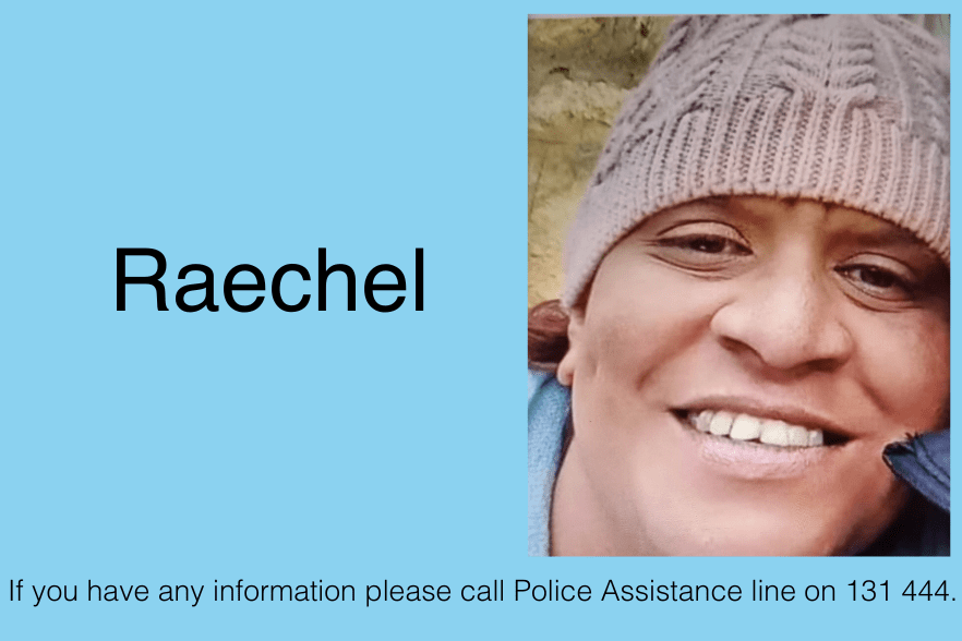 Police have concerns for her welfare and anyone who sees Raechel is asked to call the Police Assistance Line immediately on 131444.